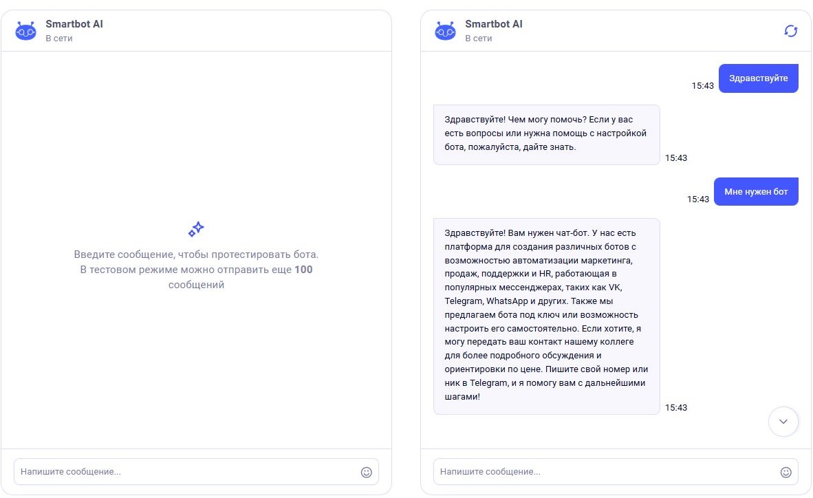 То есть, вы можете рассматривать Smartbot AI как менеджера по работе с клиентами, работающего 24/7 без выходных и отпусков, всегда остающегося вежливым, доброжелательным и корректным.