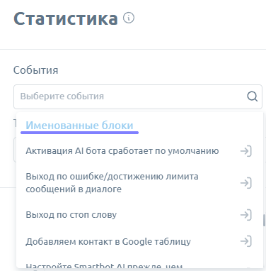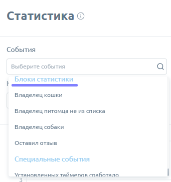* Блоки статистики. Это события, которые мы сами создали с помощью действия "Записать в статистику".&#x20;