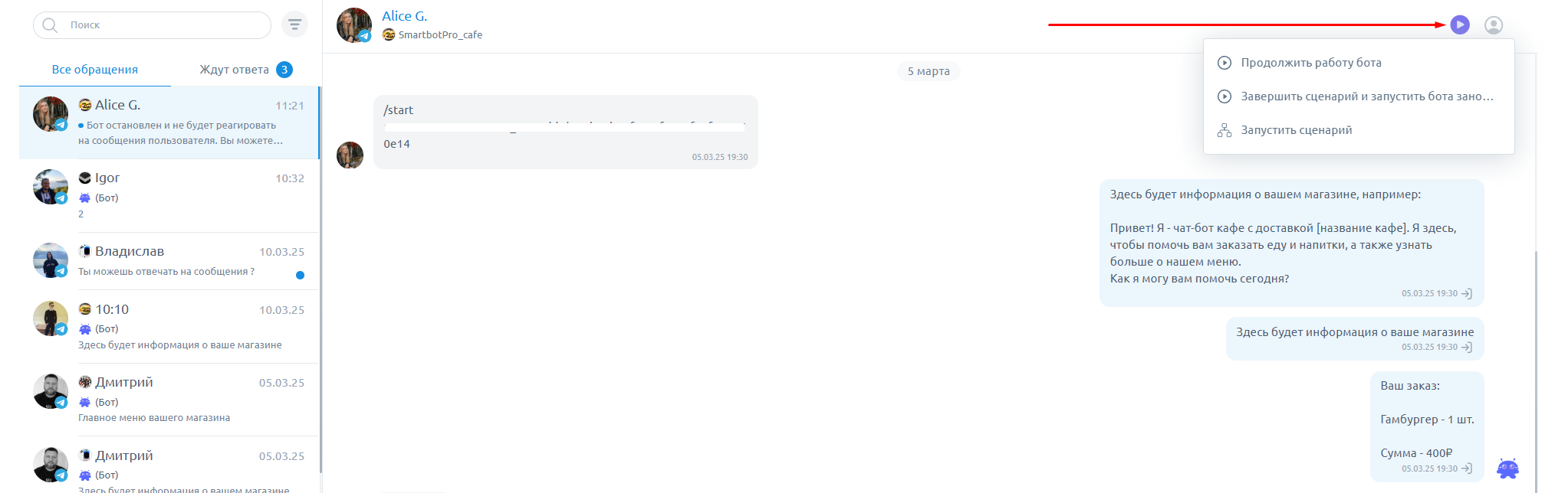 Теперь вы знаете, как приостановить бота, если требуется подключить живого человека к общению.