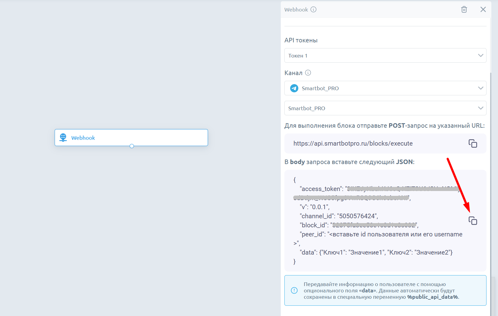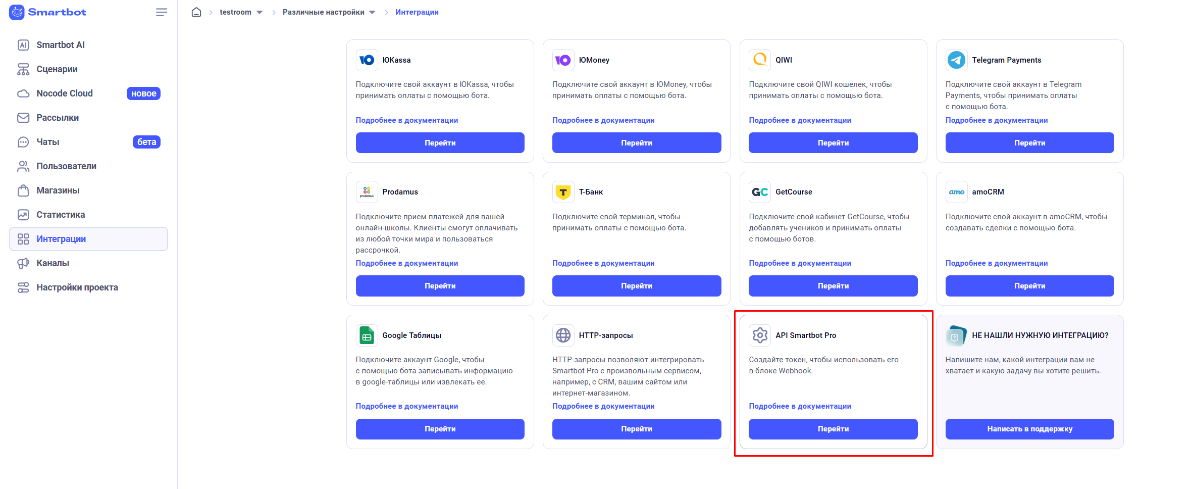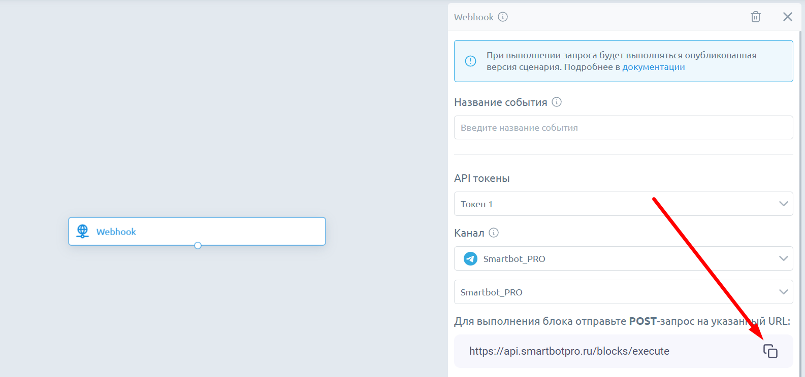 То есть с помощью вебхука другой сервис может запустить нужную цепочку сценария Smartbot Pro.